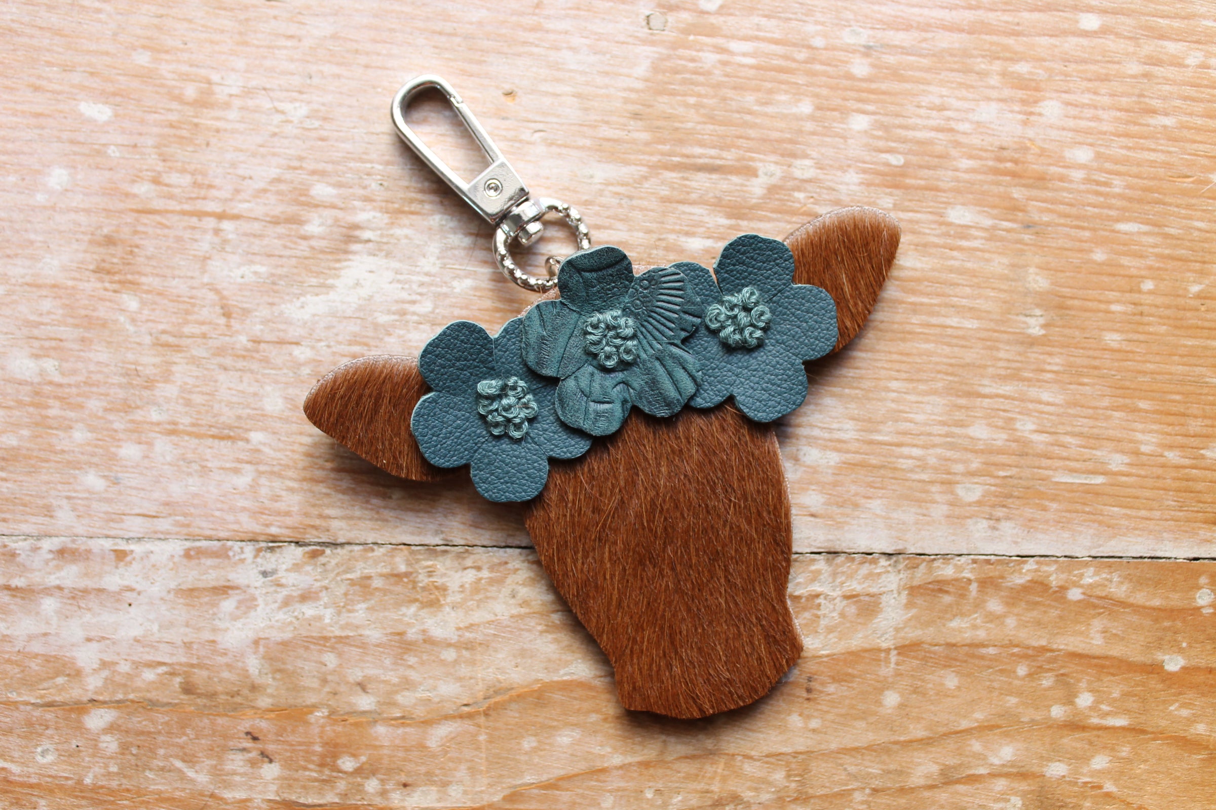 -- Heifer measures 4x3 inches and attaches with a lobster clip