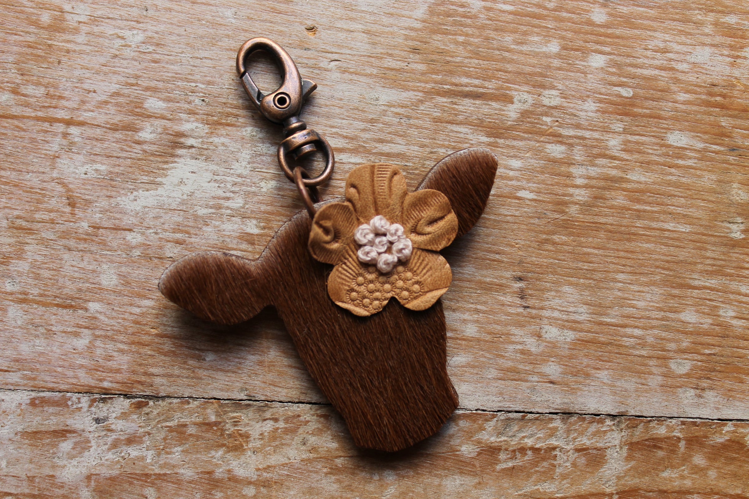 -- Heifer measures 3x2 inches and attaches with a lobster clip