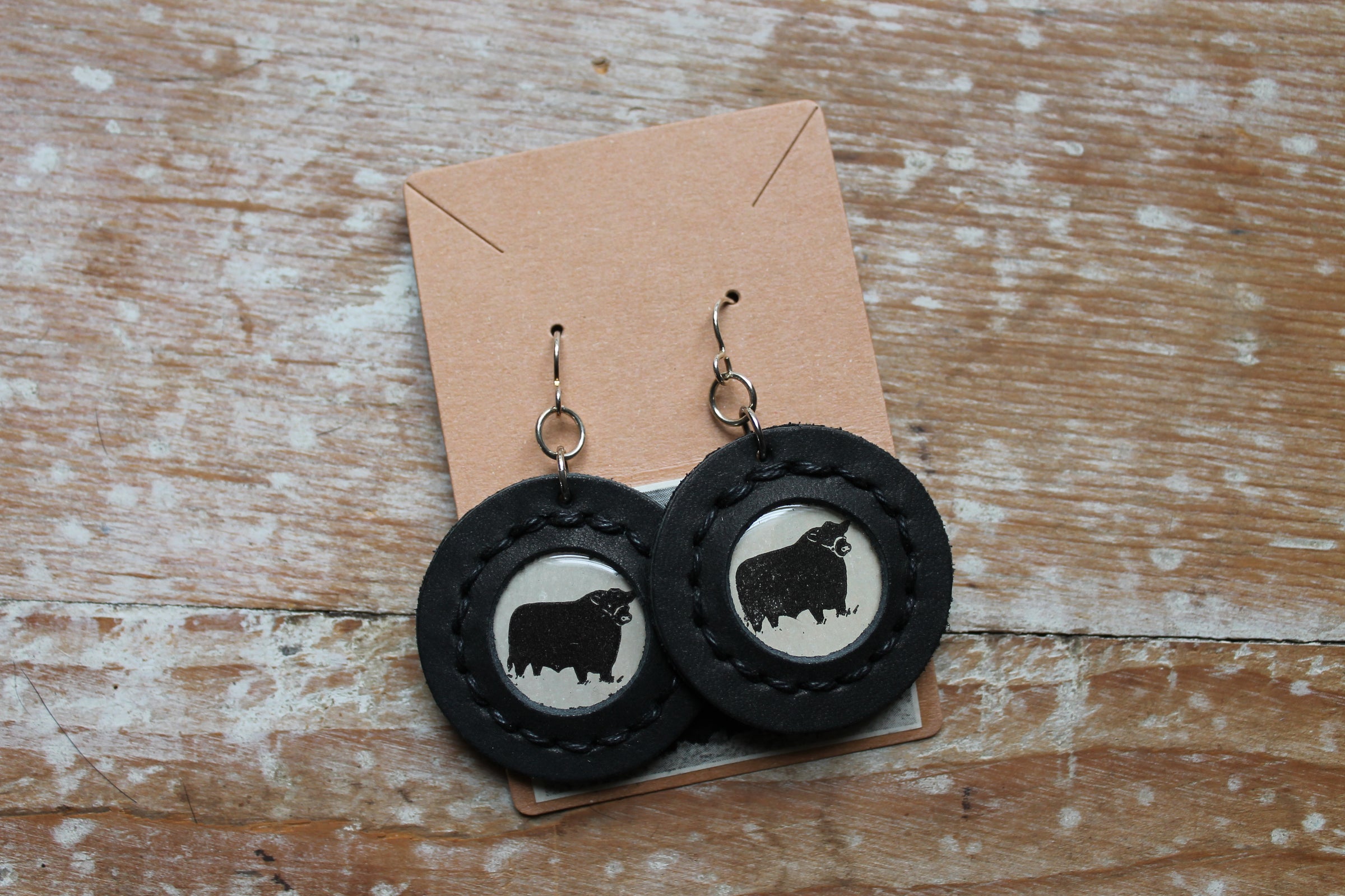 -- Vintage Angus print ad pieces from an Aberdeen Angus Journal (1940s-1960s issues) inlayed into a leather earring