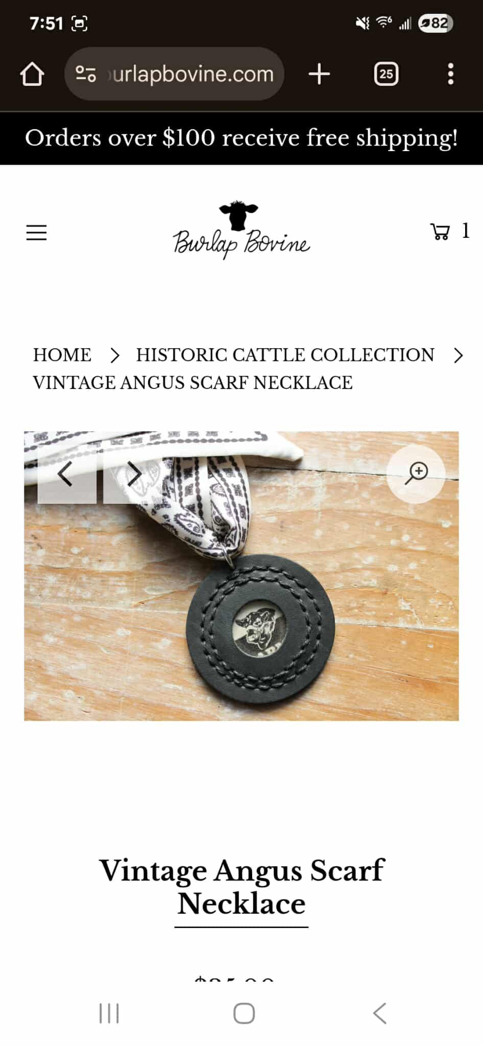 Show your love of the Red Angus breed with this unique scarf necklace!