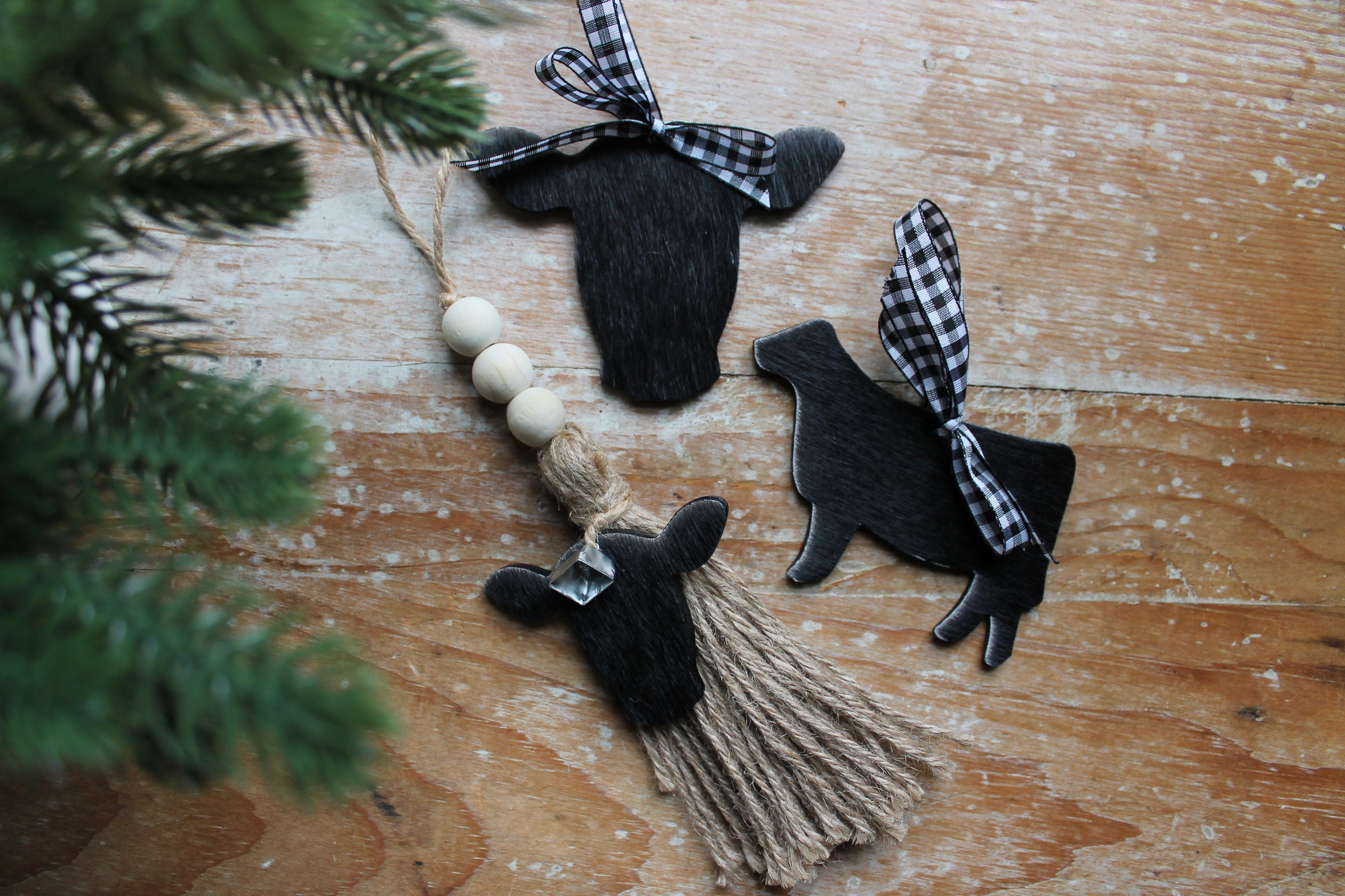 Celebrate your love of Black Angus by decorating for the holidays with black cowhide ornaments!