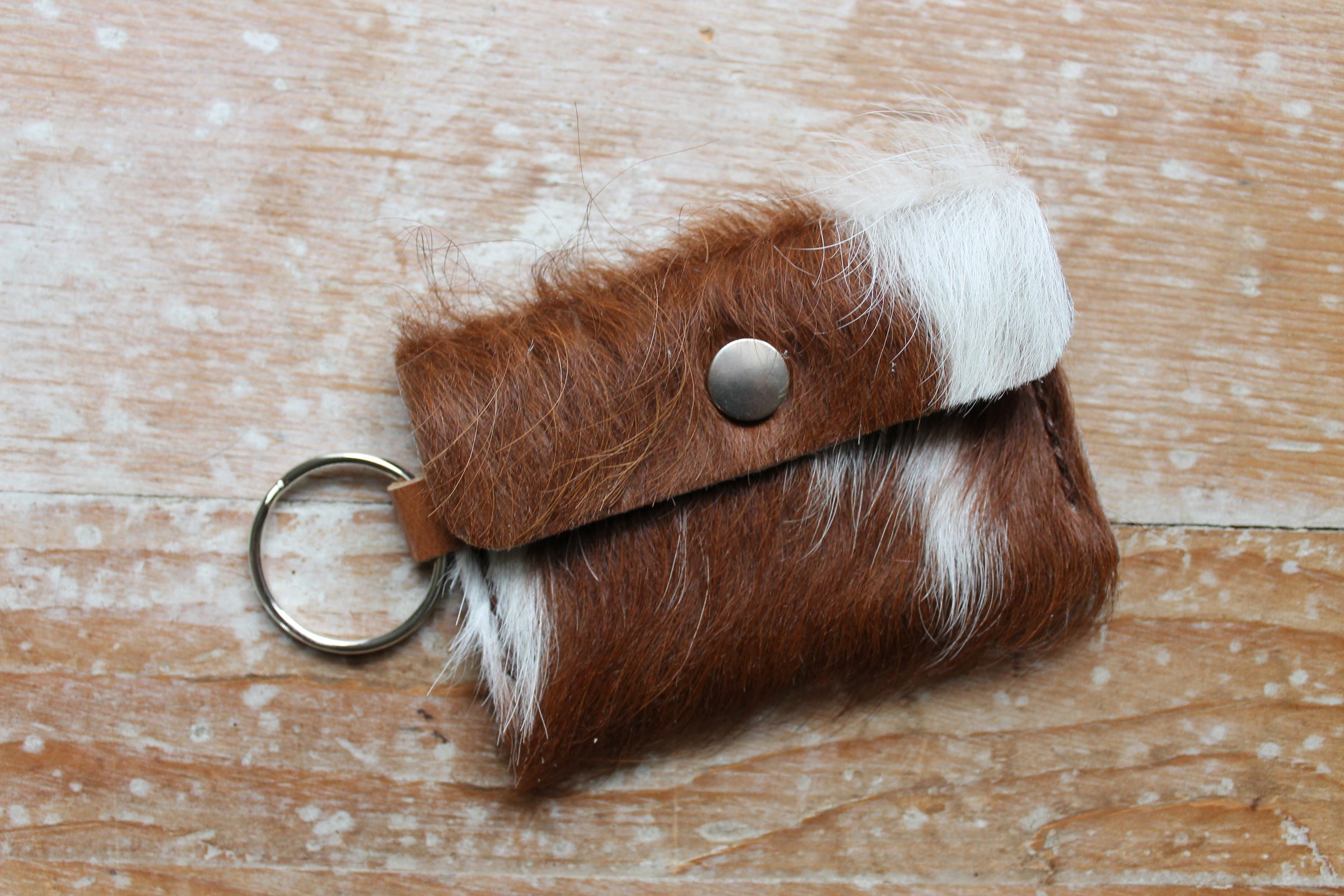 Hold your cards in cowhide style with these versatile cowhide card pocket wallet keychains!