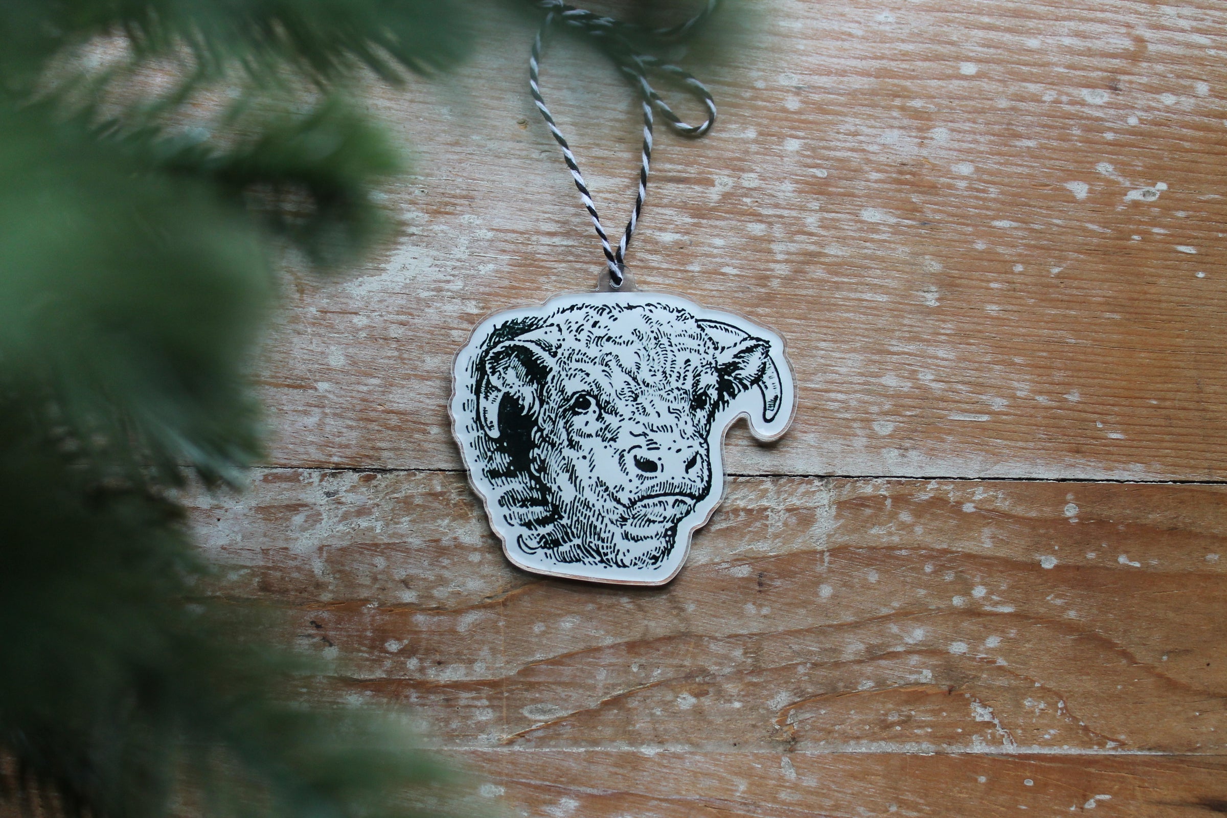 -- Acrylic ornament, advertisement graphic from a vintage American Hereford Journal from the 1960s