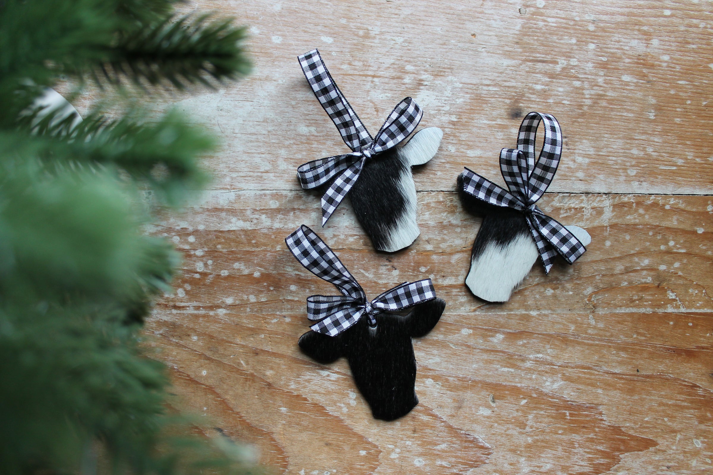 Celebrate your love of black and white cows by decorating for the holidays with mini cowhide ornaments!