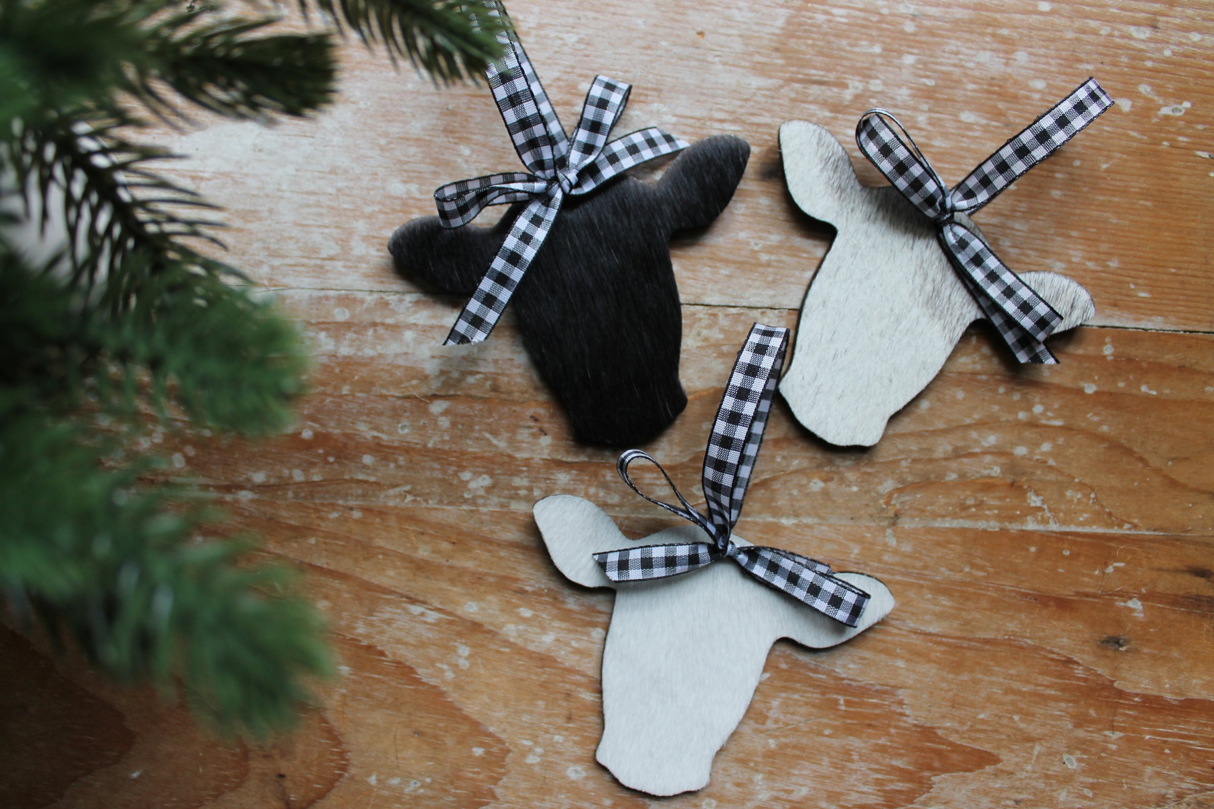 Celebrate your love of black and white cows by decorating for the holidays with cowhide ornaments!